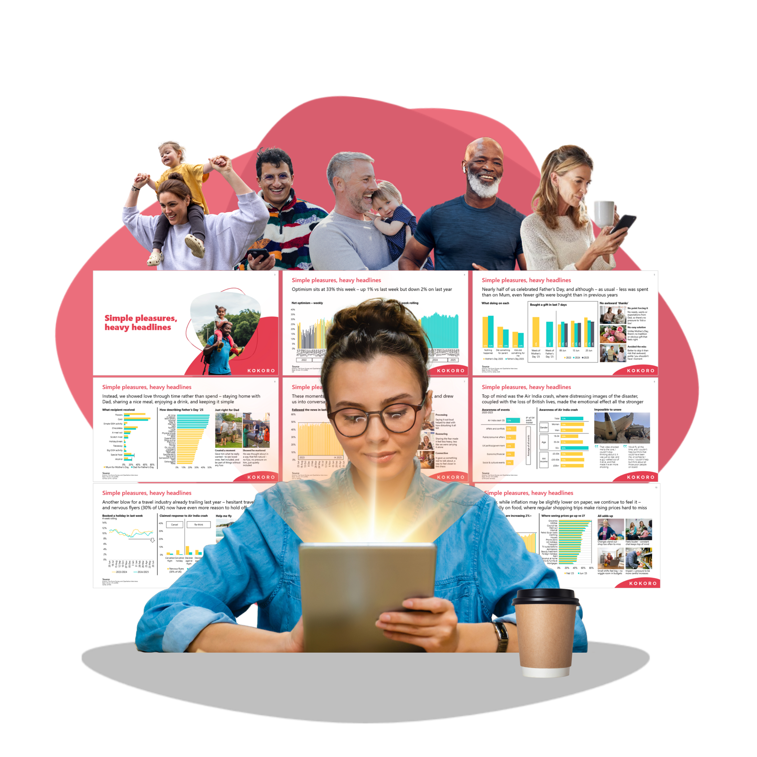 Kokoro deliver a pulse of the nation like no other I have seen. It sits perfectly in a whitespace between ‘robotic’ big data and the rich nature of qual. Brilliantly weaving a narrative that feels so intuitive and true, it helps us understand how the nation are behaving with richness and robustness, and images as much as data.