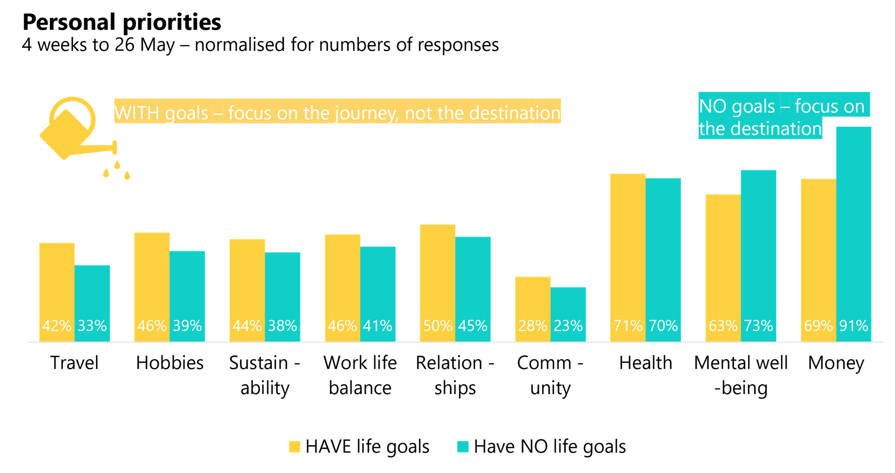 Personal goals give us purpose and enable us to be more resilient in an unpredictable world. So brands can play a role on helping consumers break out of their malaise through goal setting and behavioural nudges to focus on the journey, not the destination.