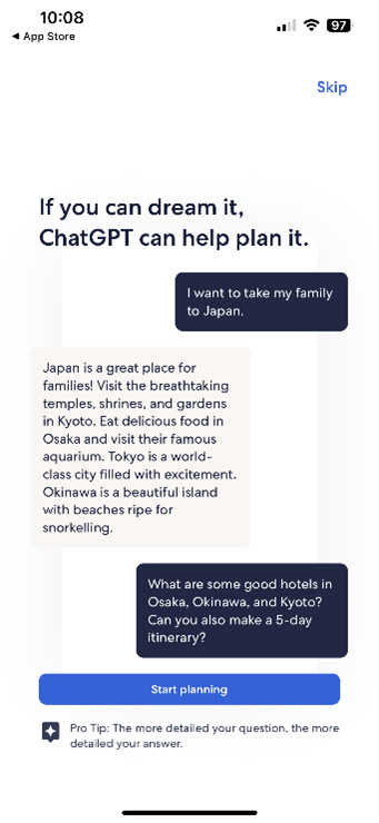 The likes of AirBnb use smart categories to help people home in on the type of trip they’re looking for (e.g. beachfront, mansions, shepherd’s huts, even mansions) in a location-agnostic way. Expedia’s recent integration with ChatGPT tackles this in a different way – allowing you to talk through what you want and explore without having to scroll through thousands of options.