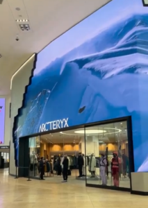 The same principle holds for windows. The most impactful window designs are typically those that feature large, uncomplicated bursts of creativity, capturing and holding our attention. Consider Lush’s current Christmas window, where giant inflatables surprisingly exude appeal. Ray Ban employs high-impact creative digital screens, prompting thoughts of sunglasses in the midst of winter. At the upper echelon, Hermes demonstrates the impact of snow monsters, while Arc’Teryx showcases the formidable influence of digital on a grand scale.